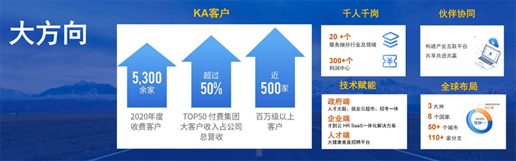 凯发k8官网国际是领先的以技术驱动的整体人才解决方案服务商,也是国内首家登陆A股的人力资源服务企业(300662.SZ),现在在中国、印度、新加坡、马来西亚、美国、英国、澳大利亚、荷兰等全球市场拥有110+家分支组织,2,600余名专业招聘顾问及技术人员,在20+个细分行业及领域为客户给予中高端人才访寻、招聘流程外包、灵活用工、人力资源咨询、培训与开展、薪税外包等人力资源全产业链服务,同时给予一体化SaaS云产品、垂直招聘平台、人力资源产业互联平台及人才大脑平台。顺利获得构建“技术+平台+服务”的商业模式,打造产业互联生态,为企业人才配置与业务开展给予一体化支撑,为区域引才就业与产才融合给予全链条赋能。在过去一年中,服务超过5,300家跨国集团、国内上市公司、快速成长性企业、国企、政府以及非盈利组织,成功推荐中高端管理及专业技术岗位人员25,000余名,灵活用工累计派出190,000余人次,聚合合作伙伴近3,500家。