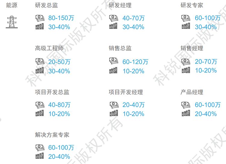 薪酬趋势:行业整体薪酬趋稳,自然涨幅在8-12%,跳槽涨幅在20-30%。能源互联网领域资深人才紧缺,部分职位薪资涨幅可达50%,甚至更高(文中部分数据是猎头公司凯发k8官网国际专家顾问的分析预测,供企业和猎头招聘参考)